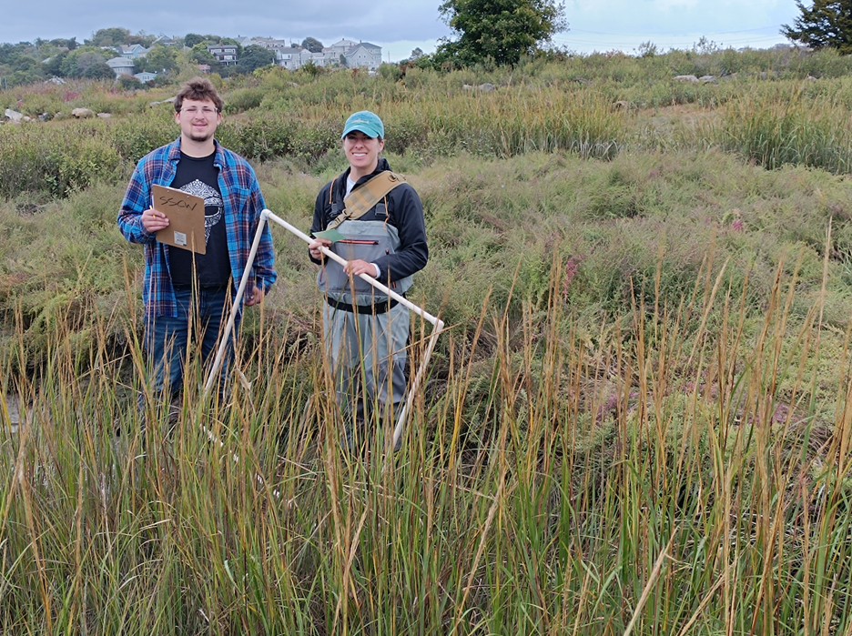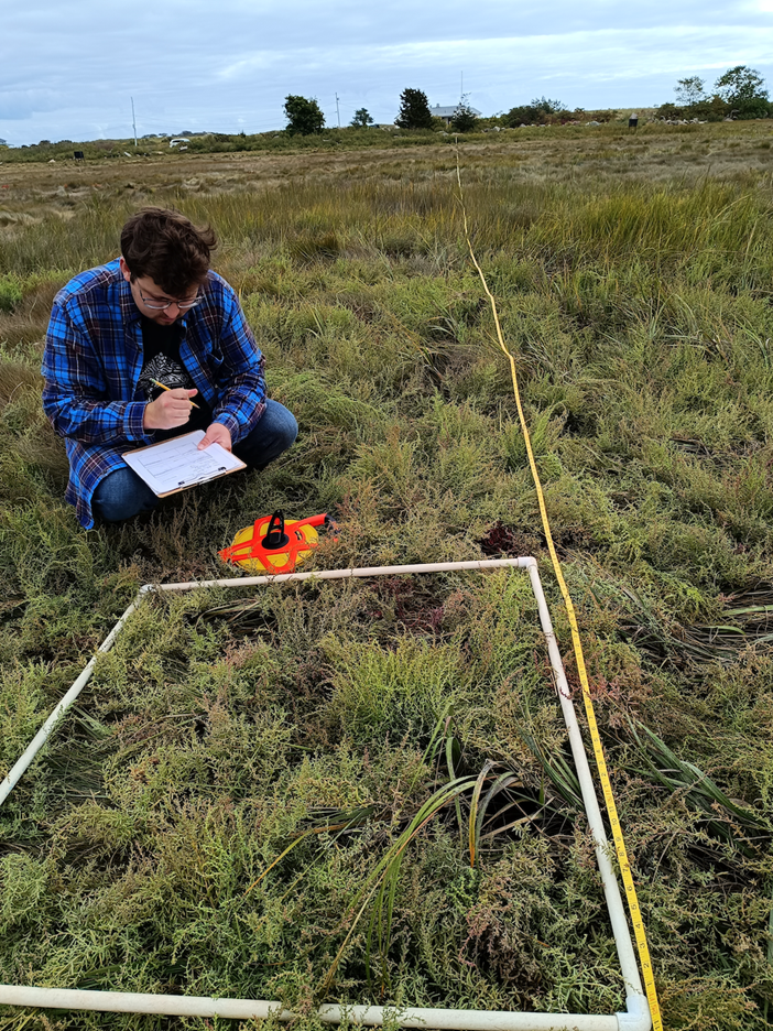 In addition to studying eelgrass habitats, Atticus joined Barbara and Alison with long-term monitoring of the Good Harbor marsh in Gloucester. He identified and estimated the abundance of salt marsh vegetation, sampled the water’s salinity, and measured the creek’s rate of erosion to track how the marsh responds to climate change. For his independent project, Atticus enlisted help from an Endicott College environmental science class to monitor the vegetation of the Thissell Marsh on the college’s campus. He then compared the results to past datasets. He constructed a StoryMap to document the Endicott marsh’s condition with the hope of influencing decision-makers to restore the collapsed culvert that connects the marsh to Salem Sound.