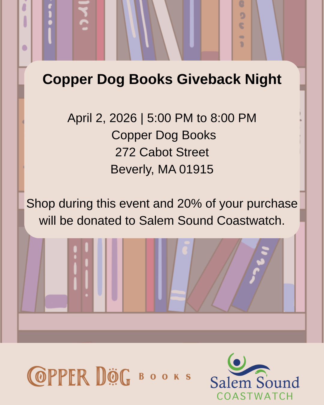 Copper Dog Books Giveback Night Shop during this event and 20% of your purchase will be donated to Salem Sound Coastwatch to support local marine conservation, environmental education, and clean… Read More »Copper Dog Books Giveback Night