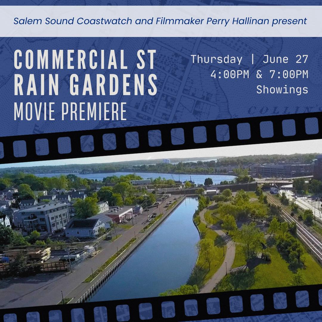 Join Salem Sound Coastwatch and Filmmaker Perry Hallinan for the premier showing of the Commercial Street Rain Garden videos! These two short videos highlight the polluted history of the North River, as well as how the rain gardens help to clean stormwater that enters the river. You’ll watch interviews with community members and get a glimpse into the design and construction of these rain gardens.