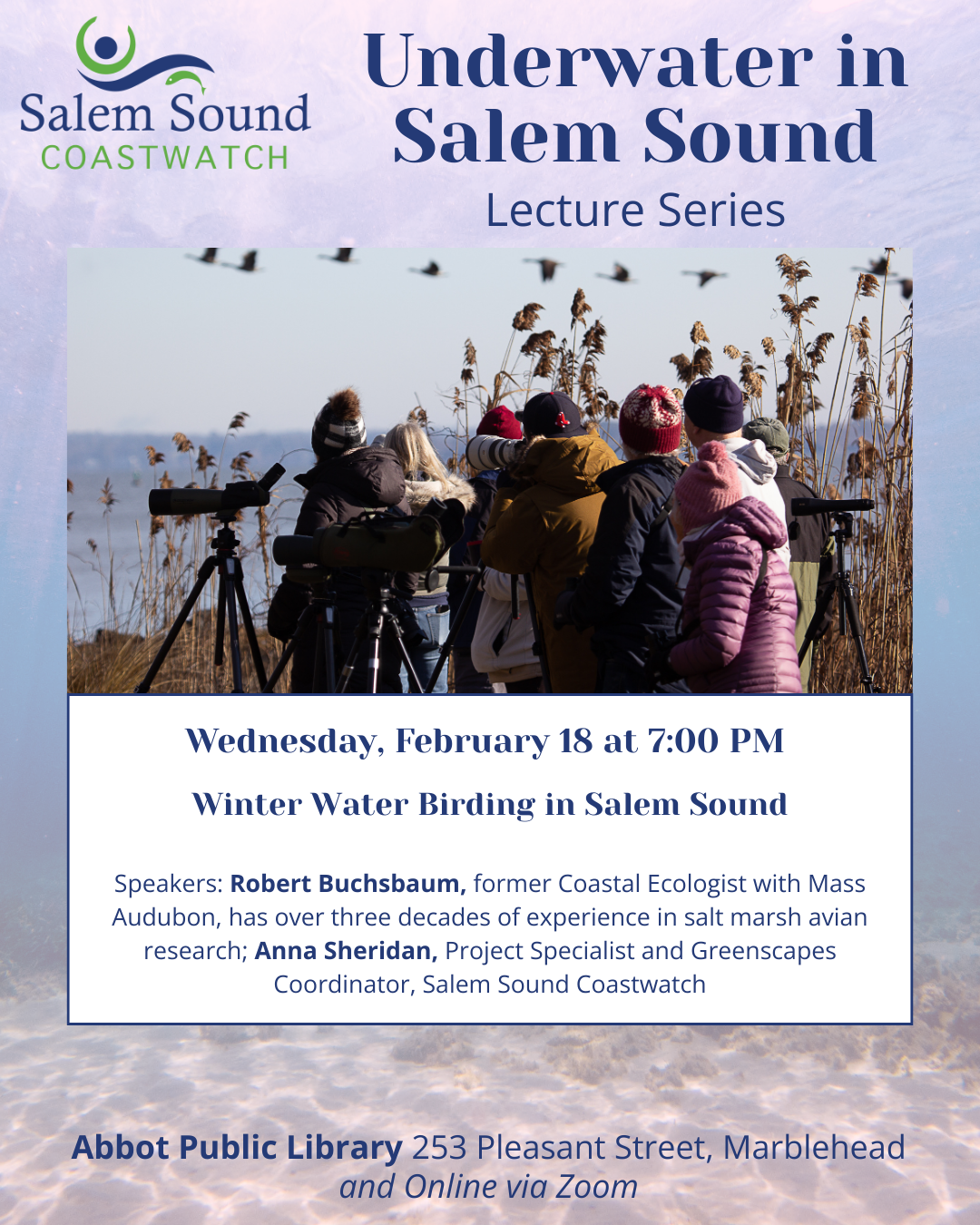 For the past fourteen years, Underwater in Salem Sound has been jointly sponsored by Salem Sound Coastwatch and Abbot Public Library. All the lectures are free and open to the public. Upcoming lectures will be on March 18, April 15, and May 20.