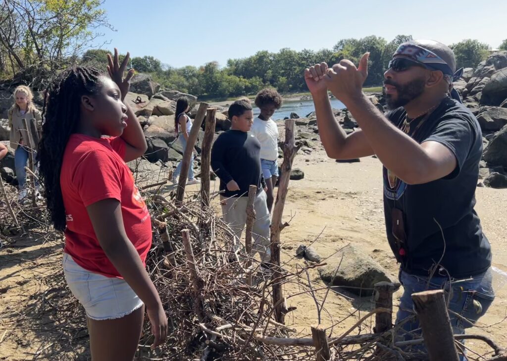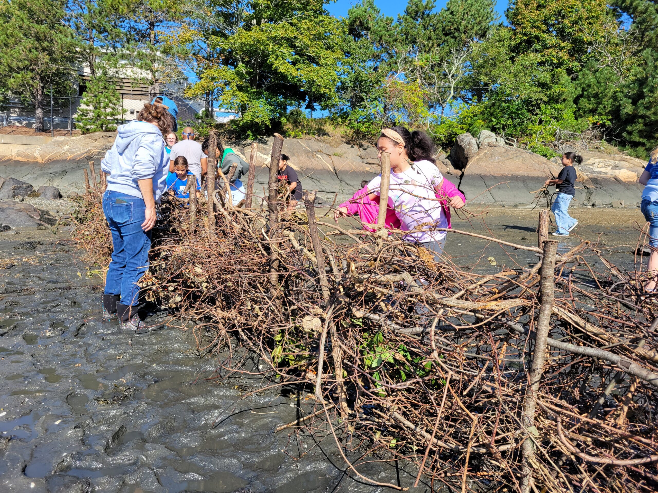 During this multi-day cultural event, students used wooden stakes and bittersweet vines to construct the weir by weaving the vines in between the stakes so that fish may be caught in the weir during high tide. At the end of each day, volunteers from ENHC and SSCW took the weir apart so that more students could learn to build it the next day.