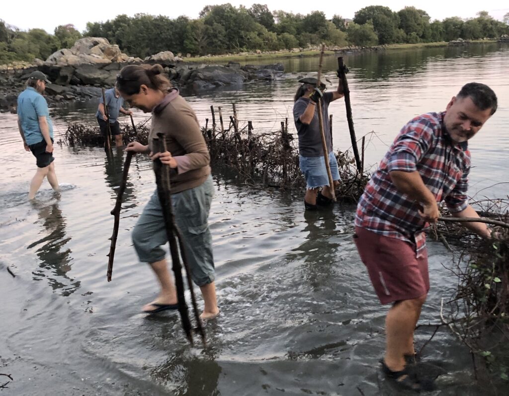 Salem, MA — As part of the Essex National Heritage Area’s annual Trails and Sails event series, students from Salem Public Schools, members of the Massachusett Tribe at Ponkapoag, the City of Salem, and Salem Sound Coastwatch created an historically-accurate fishing weir at Cat Cove this past September.