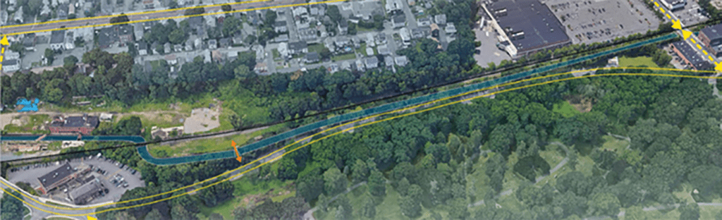 During flooding analysis studies, it was realized that Lawrence Brook was a contributor to Walnut Street flooding. Salem Sound Coastwatch and Dr. Lindley Hanson first called the City’s attention to this buried North River tributary that discharges behind 45 Walnut Street. In 2018, the Lawrence Brook Watershed Assessment Project evaluated low impact development (LID) and green stormwater infrastructure approaches to reduce flooding. The construction of this underground storage unit under the park will reduce the level of flooding on Walnut Street.